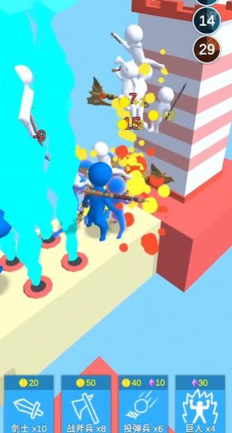 1、轻松滑行,逐一消灭追上冲刺游戏的敌人。当所有的红色反派都被消灭后,他们就成功了。