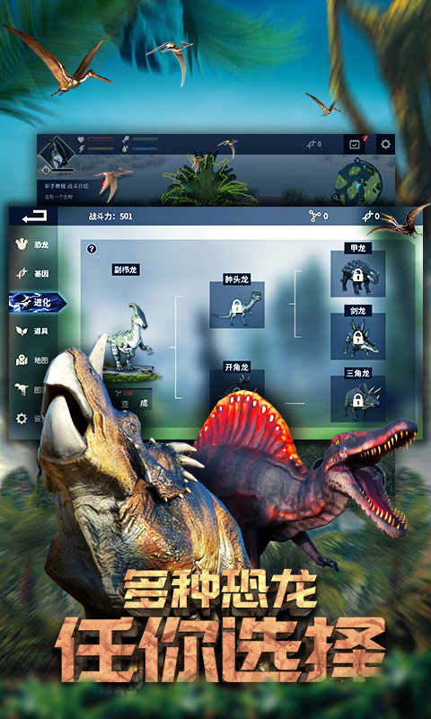 3、各种恐龙都能扮演,不同种类具有不同的能力,让你的生存更精彩。