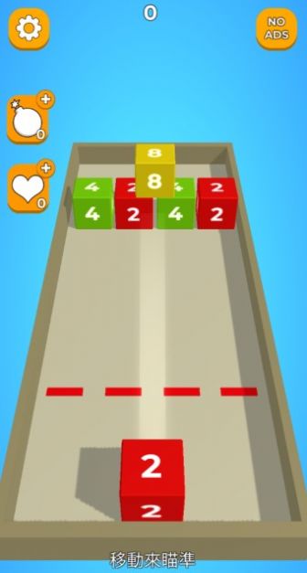 1、考验你计算能力的时候到了,瞄准方块进行发射合成2048进行消除。