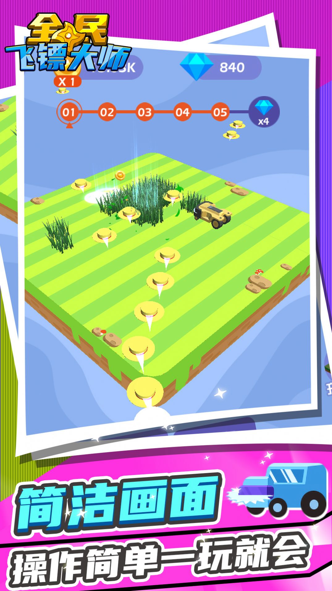 玩起来轻松有趣的割草游戏,在这里玩家可以用各种飞镖进行割草哦。