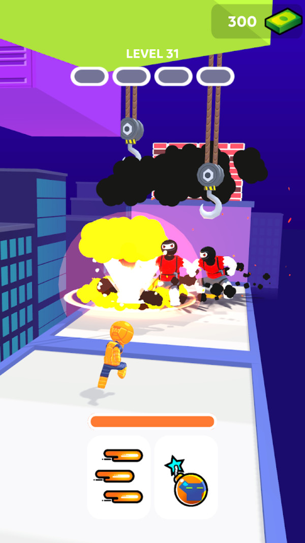 玩法操作比较的简单,朝着目标冲刺,利用绳索的钩子跑得更快。