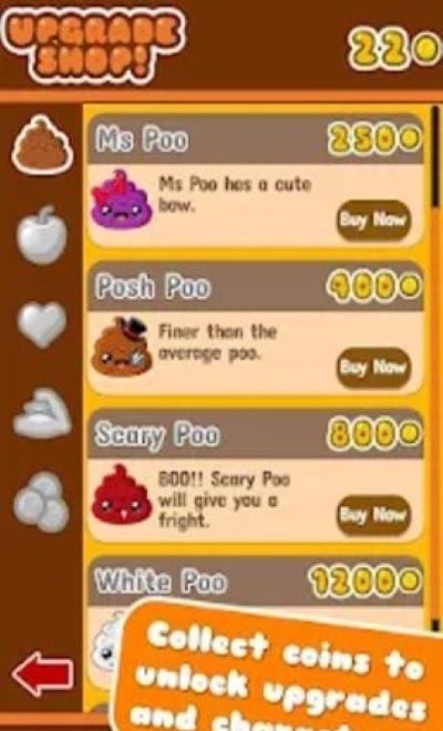 3、你可以通过在游戏中捡到金币来收集他们,也可以用你的金币来积累快乐便便的道具。