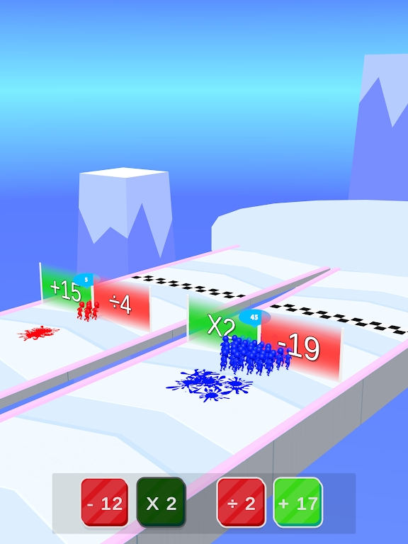 很多的障碍物和带有数字运算的方块会影响你的人物数量,保证人数才能够通关。