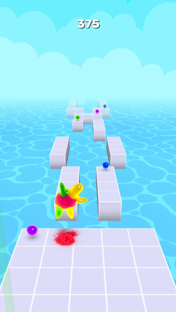 3、注意不同的障碍物,别让果冻人掉色了,顺利到达终点获得奖励。