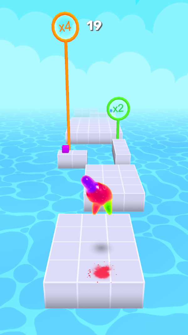 当心障碍物,并让自己变得长大,终点的奖励多少取决果冻人的大小。