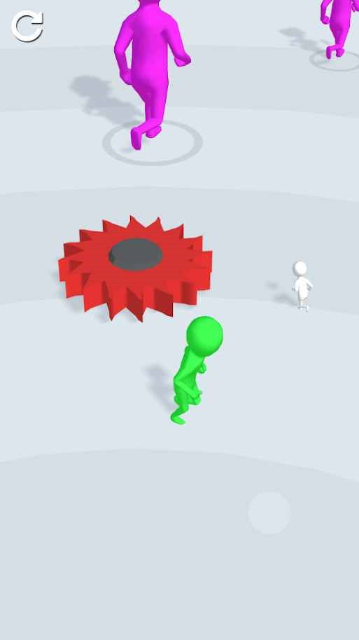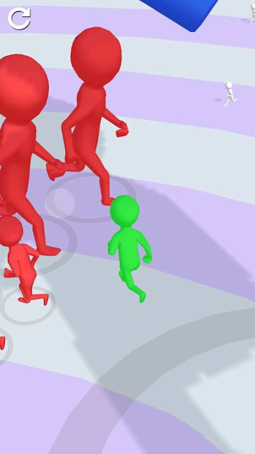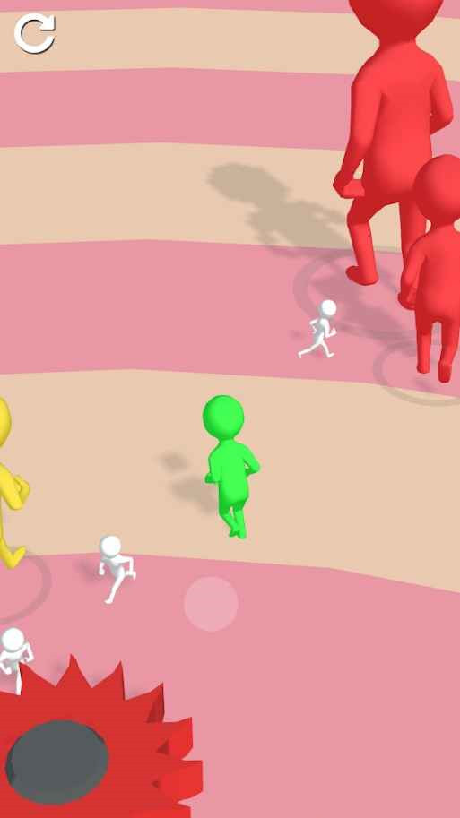 1、通过上下左右滑动屏幕控制角色移动,尽量多的吃掉白色小人,让自己不断变大。