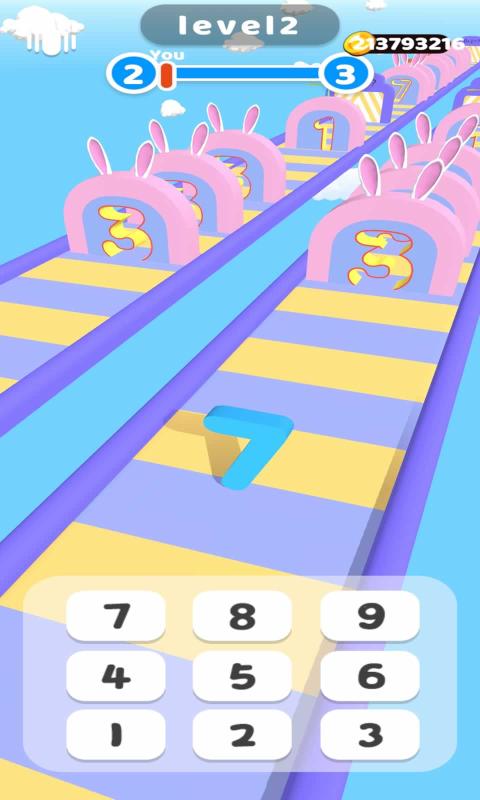 数字竞赛3D是一款考验玩家们数学计算能力的益智类游戏,在每一个关卡之中都具有着很多的难题在你的面前,需要通过计算来得出最终的答案,并点击屏幕下方的数字按键,让自己能够顺利的通过这些障碍,在与对手的比拼之中第一个抵达终点,以此来证明一下自己的数学能力,快来下载游戏试一试吧。