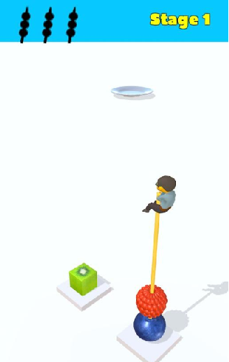 1、你骑在竹竿上,跳到你面前的食物上,准确地落在食物上,然后继续下一个食物。