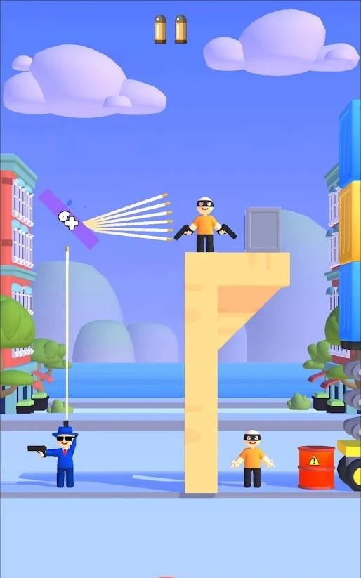 这里面的子弹是可以实现反弹的,因此体验上也会更加的富有乐趣,通过不断地练习找好射击的角度,完成相关任务。