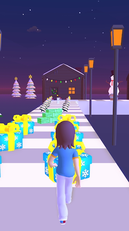3、在圣诞节跑酷游戏中玩家可以控制自己的角色,在赛道上一边跑酷,一边收集圣诞套装。
