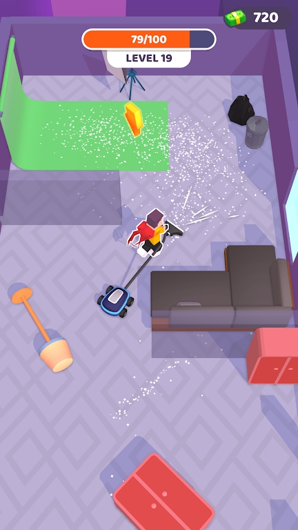 3.各种有趣的关卡和不同的游戏工具帮助你轻松清理各种场景。玩家可以在游戏中学习各种清洁技巧,养成热爱清洁的各种好习惯。