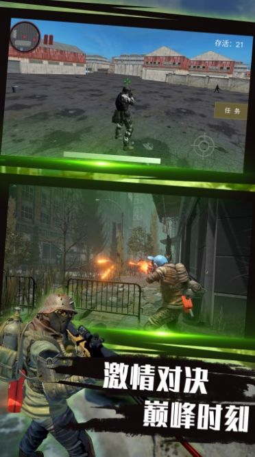 战地枪战生存模拟是一款能够让玩家更轻松更自由的参与冒险的手机游戏,十分有趣的新乐趣带给你,开放性的世界等着你哦,拿起你的武器在这里战斗更激烈,挑选不同的枪械武器来战斗,新的娱乐玩法等你来哦,根据不同的任务来挑选,喜欢的小伙伴们不要犹豫了,快来下载战地枪战生存模拟体验一下吧!