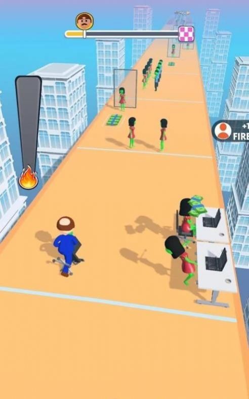 作为一名贪婪的老板,被手下的很多员工所追逐着,而你需要不断的一直向前进。