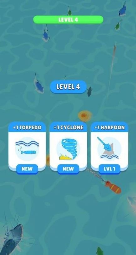 升级龙卷风等附加武器,提高生存几率和杀伤力,对抗鲨鱼。