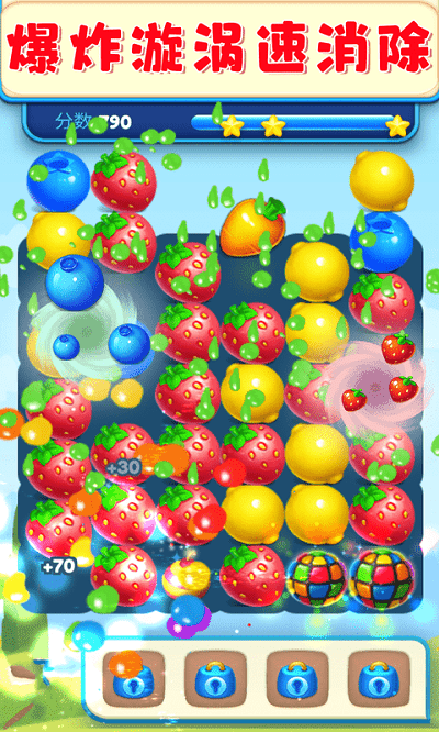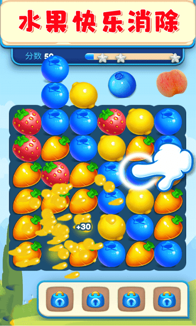 2、操作很简单,需要将相同的水果进行消除,连手残党也能轻松驾驭游戏。