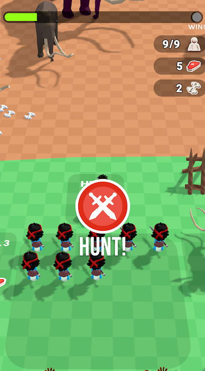 2、发展部落,解锁更多族人,一起团队协作狩猎的效率会更高一些;