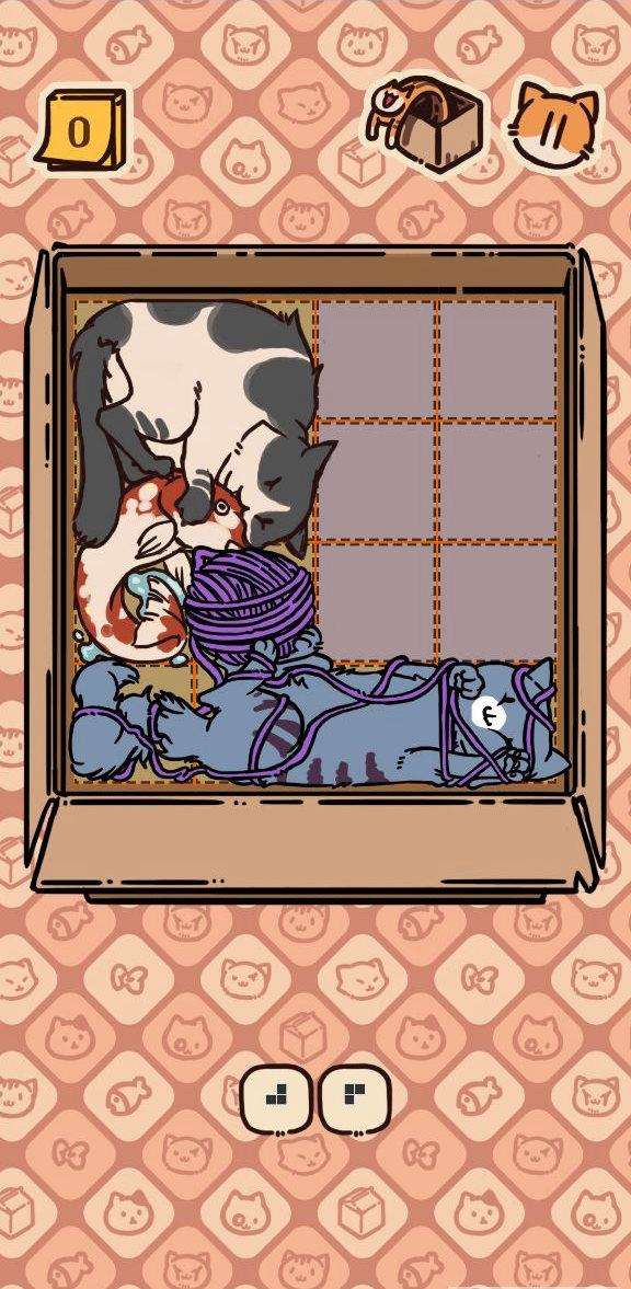 1、把各种各样的猫拼在一个小盒子里,就和拼图游戏一样,但是还包含了消除的玩法,是一个非常好玩的休闲游戏,用来打发时间是非常不错的。