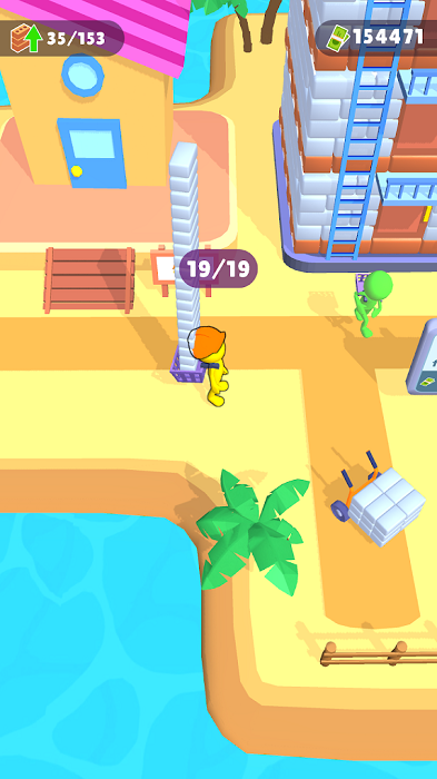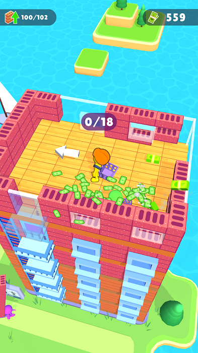 1、轻松有趣的放置玩法,各种各样的材料收集,去积极的搬砖堆叠高楼;