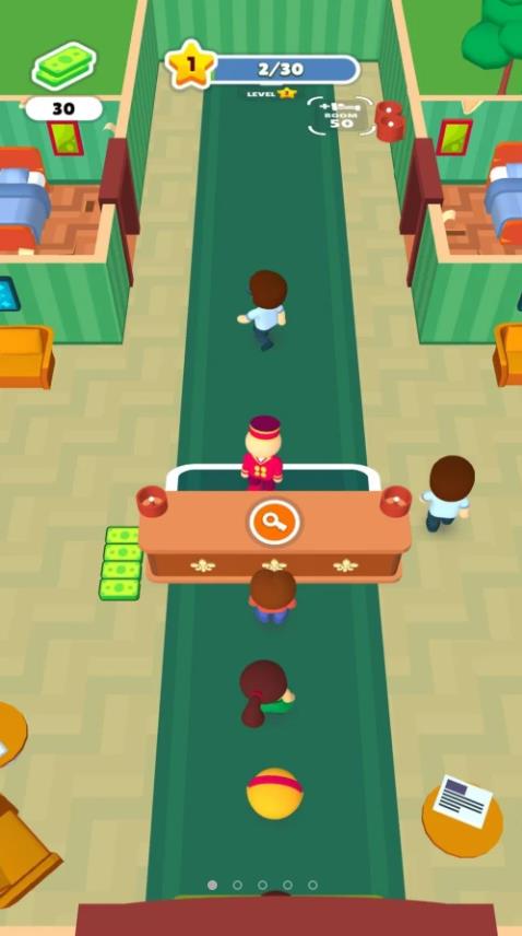 1.玩家对酒店进行管理,需要招募更多的清洁工和店员来招揽顾客。