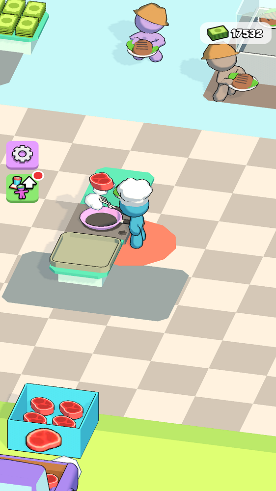 2、解锁新食谱、雇佣工人并放松身心,让厨房自动运行。
