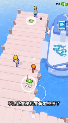 2、不断搬运港口资源,接收一个个船只,出海捕捞,获取鱼类,交易赚钱;