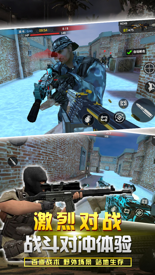 2、超级刺激的各种枪战以3D横屏的方式呈现,身临其境。