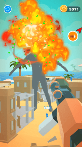 1、卡通的游戏画风世界,自由进行狙击战斗,消灭巨人;