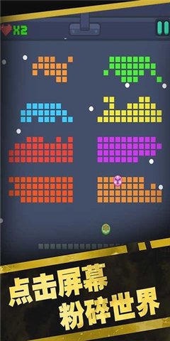 像素破坏机是一款非常非常不错的休闲益智解压类的手机游戏,玩家们只需要在游戏中不断的去消灭像素方块就可以啦,简单的操作方式让玩家们更好的去上手,将像素打碎到一定数量的话就可以进行通关啦,非常的轻松便捷呢,还可以和好友们一起来进行比赛的哦,非常的具有趣味呢!