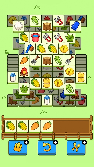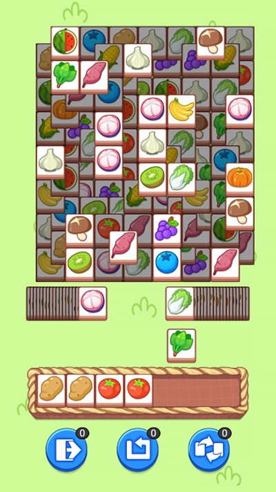 3、不断寻找相同的方块放置在下方的卡槽中,每三个相同方块都能直接消除。