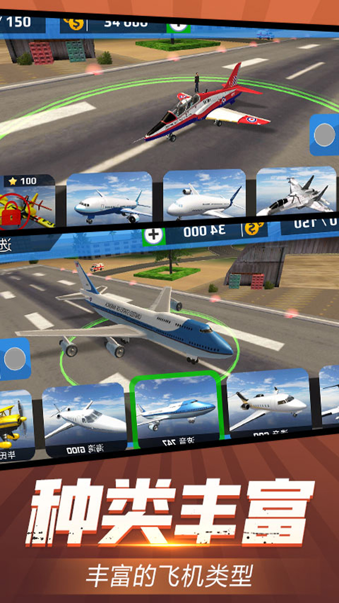 1、提供大量的飞机,不同的驾驶体验,带来精彩的游玩体验。