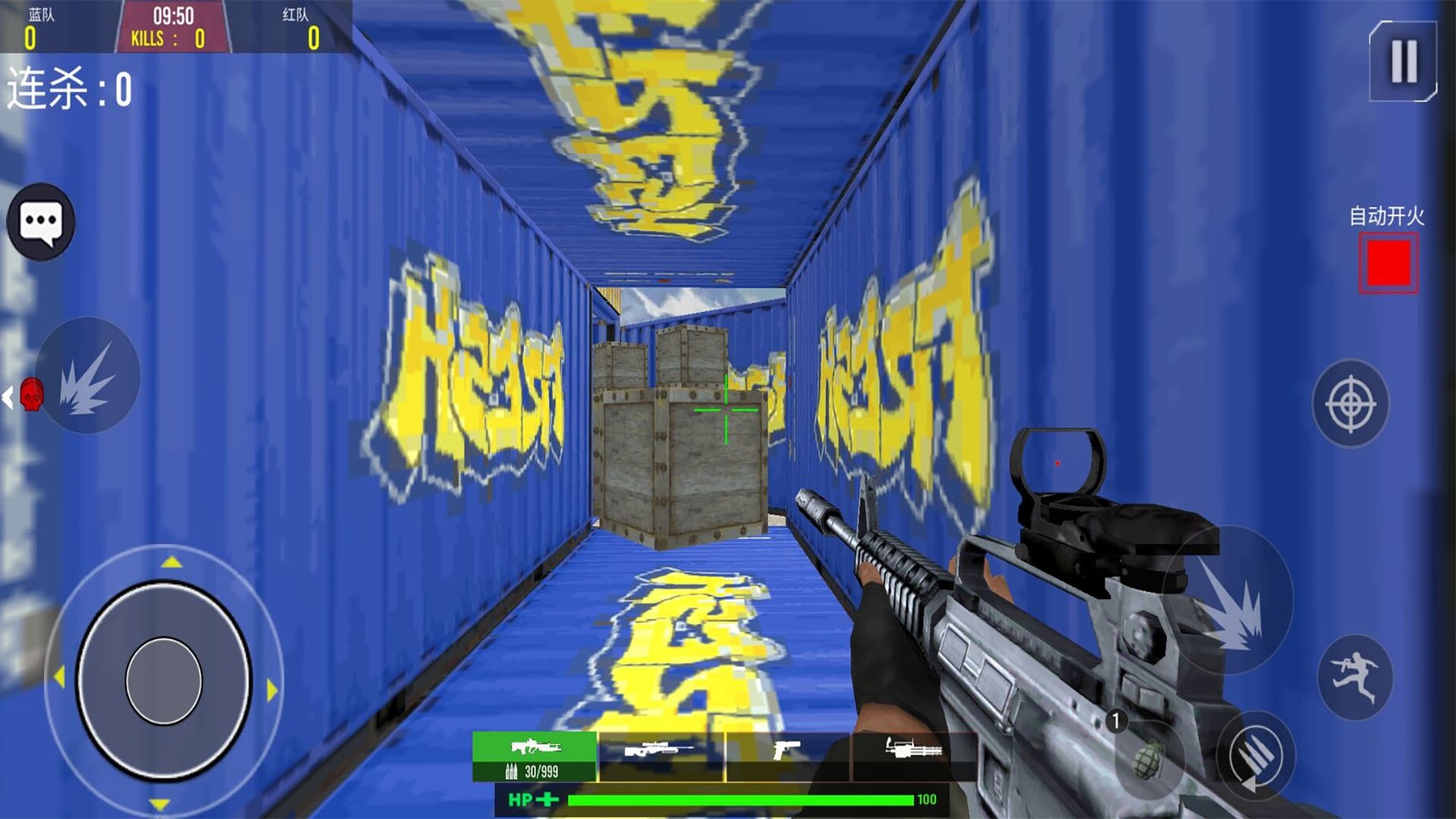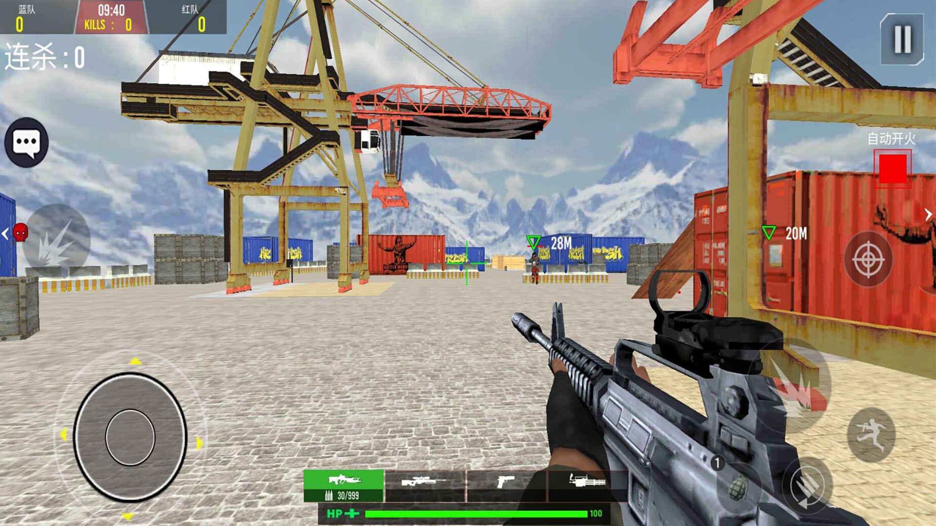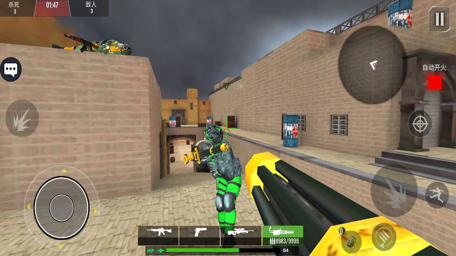 3、每张地图中都有不同的环境出现,在战场中快速锁定敌人,选择合适的武器快速取得胜利。