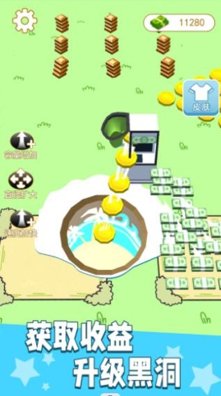 1、轻松休闲的黑洞吞噬游戏,诸多玩法,尽情挑战;