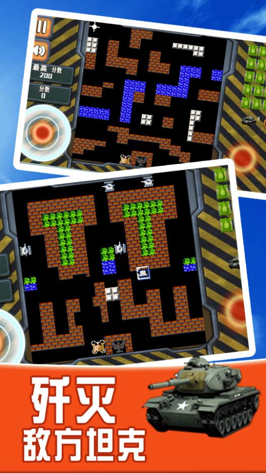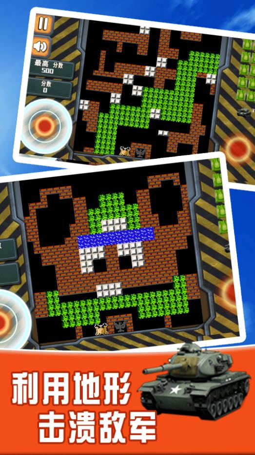 1、经典的老游戏,经典的坦克模型,战斗画面华丽升级,超多关卡任你闯荡。
