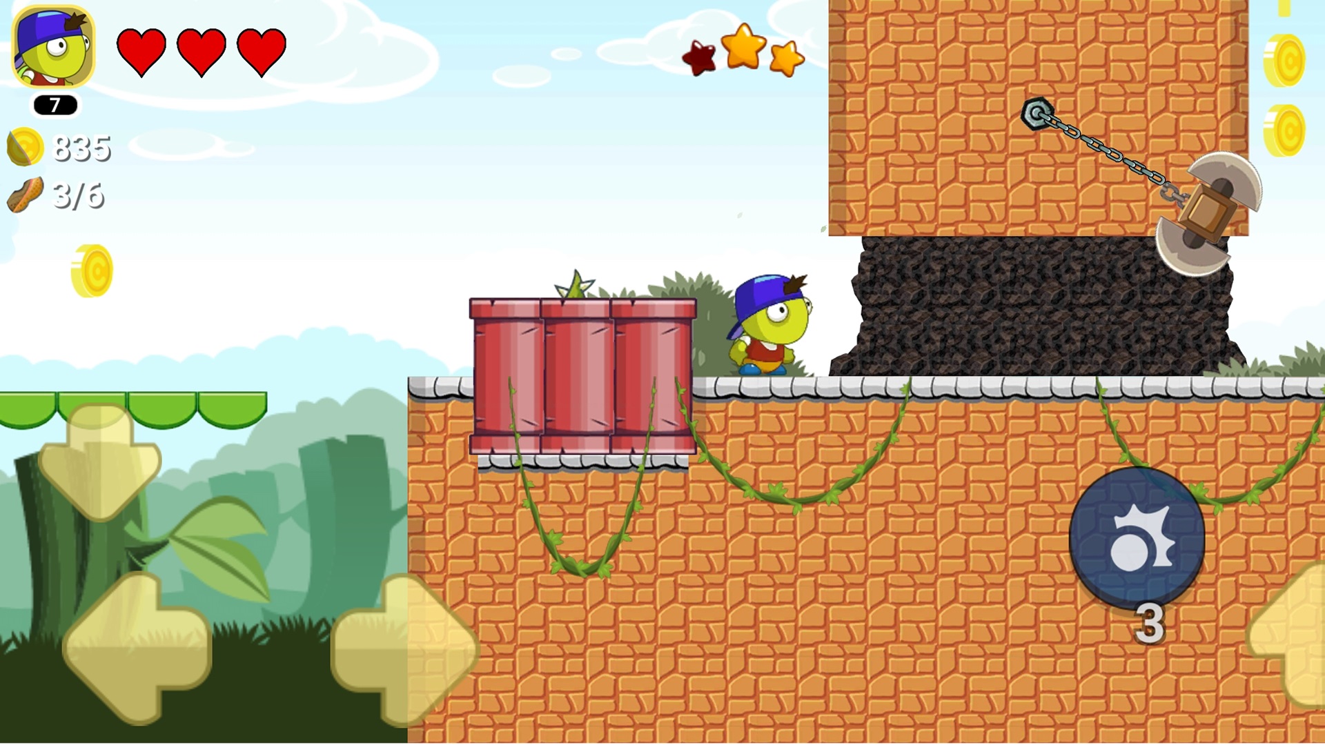 2、关卡里有很多陷阱,非常考验你的应急能力,去躲避突然出现的障碍物和陷阱。