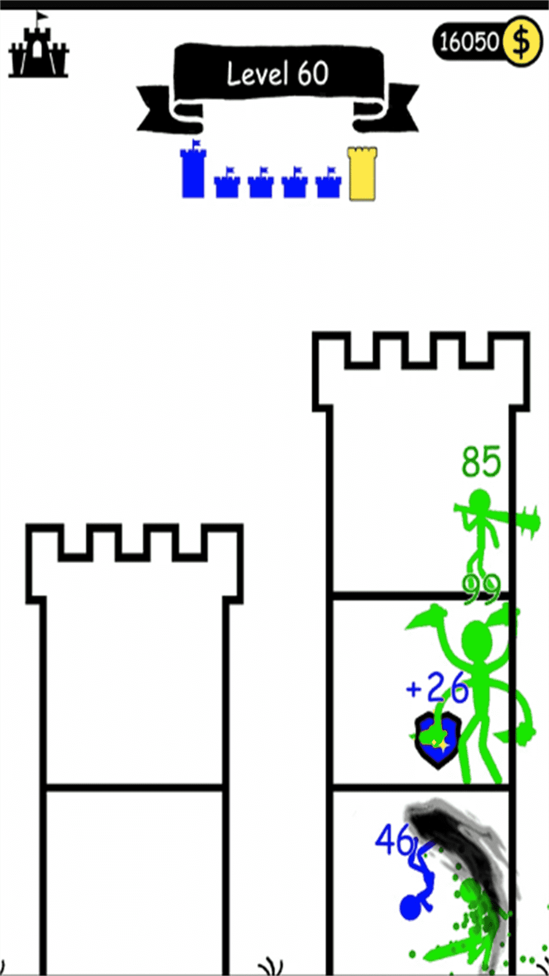 火柴人探险,经典火柴人爬塔战斗游戏。玩家操控火柴人英雄解锁装备武器,提升战力对决每层塔楼BOSS,掉落宝箱装备升级登顶塔楼,拯救被困的公主吧。