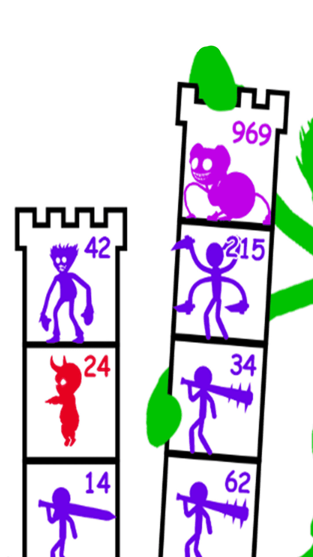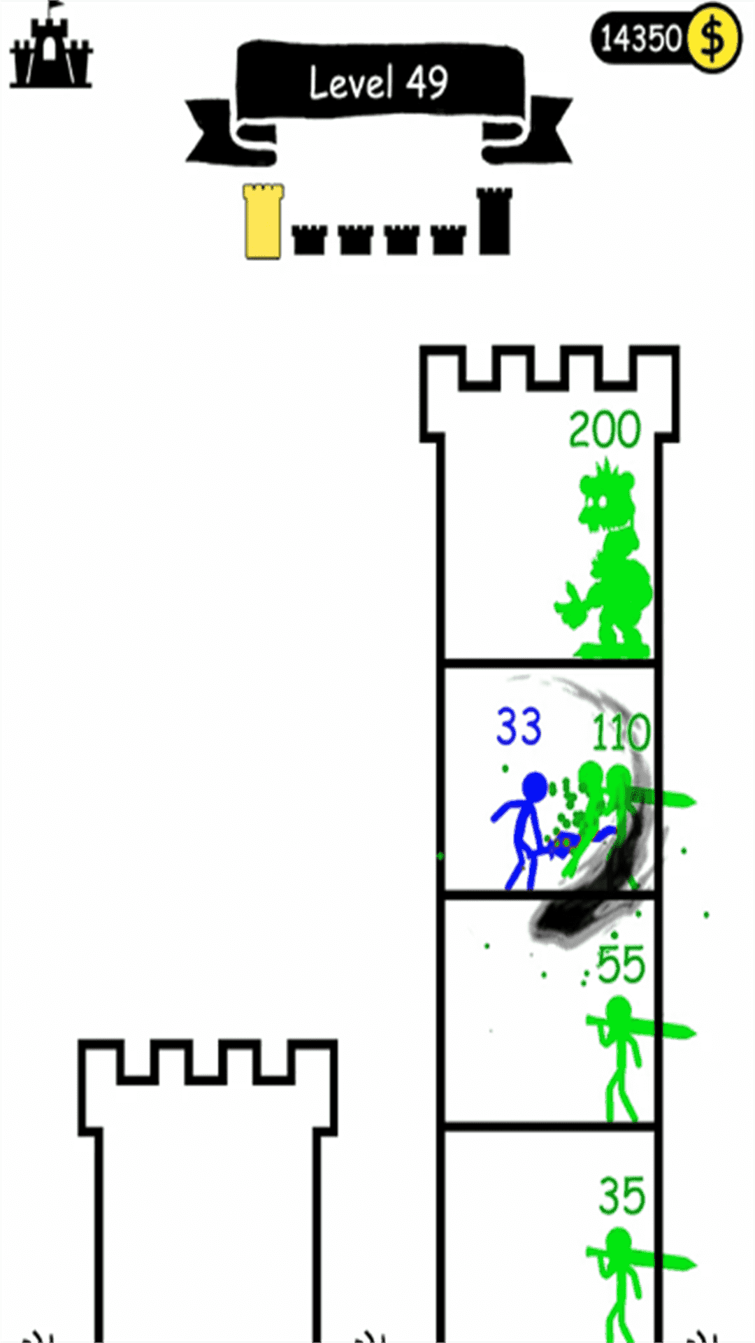 1、你将成为一名火柴人勇士,开启全新爬塔挑战,你要击败所有敌人,成功拯救美丽的公主。