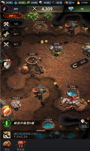 1、指挥蚂蚁士兵进行战斗,或者是分区建设,让自己的蚂蚁帝国变得更强。