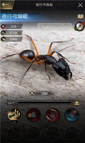 2、不同的蚂蚁有不同的属性,技能也不一样,一定要根据他们自己的情况来进行安排,这样会发展的更快。