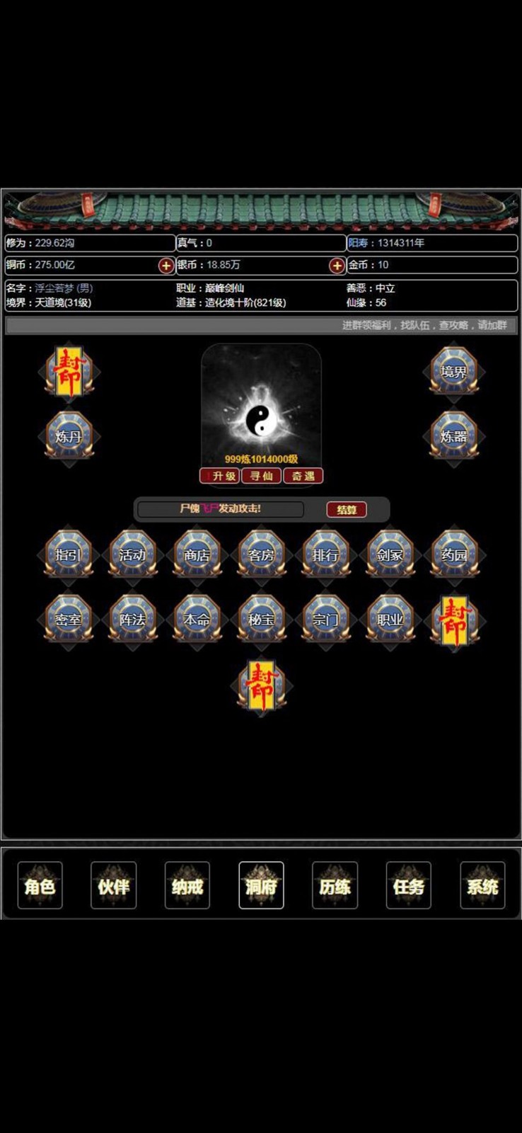 3、一场奇妙的修真旅途在这里开启,放置组队开启,和那些敌人来一场生死战吧。