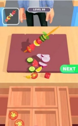 3、只需一个手指即可控制,可以选择多种食材,内置丰富的挑战等级,只要你能做出完美的烧烤,你就可以过关。