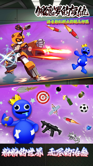 2、想在这款毁灭性的游戏,彩虹之友中粉碎你周围的一切吗?想要更多地踢打蓝色怪物?