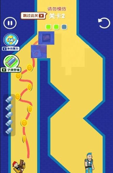 2.通过画线的方式来一场刺激的对决,手指画线自由掌控子弹发射的线路。