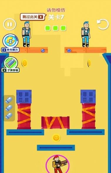 3.控制好角度,让子弹击中敌人,如果能够同时获得金币那就更加完美了。
