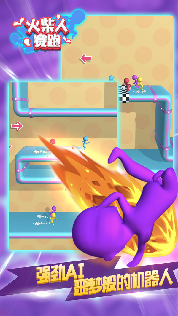 1、游戏中玩家只需要控制自己的火柴人角色,与其他玩家展开赛跑对决。