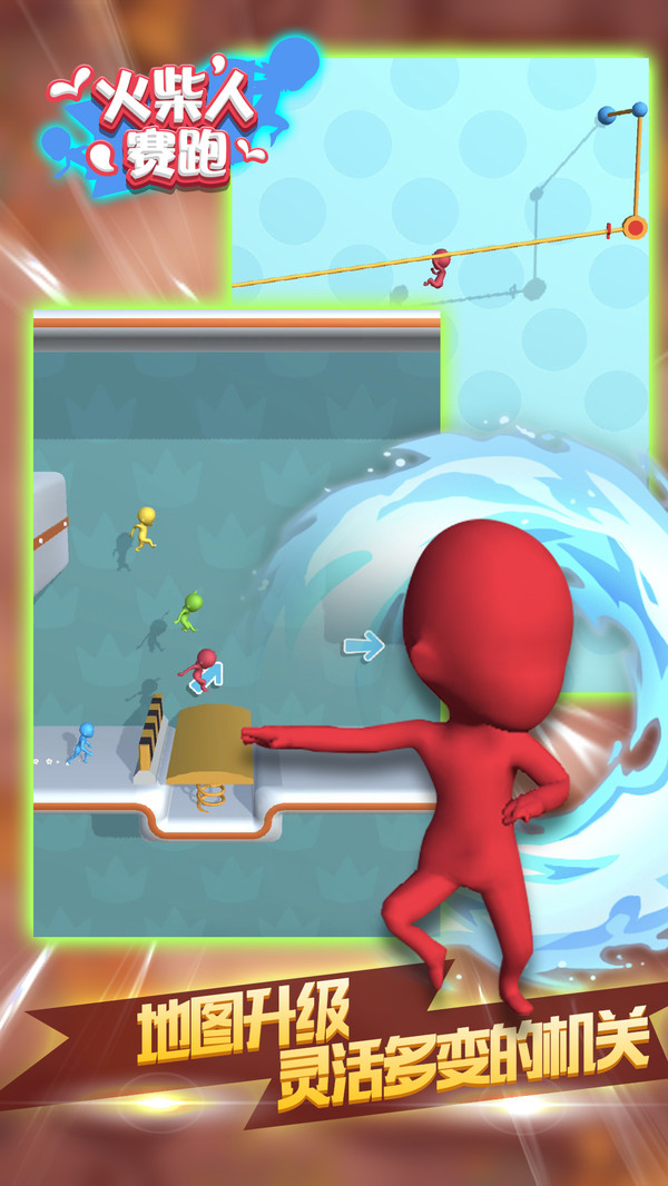 火柴人赛跑是火柴人为角色的在线跑酷竞技手游,游戏操控简单,只用控制方向,和其他火柴人一起比比看谁更快,这里地图非常多,机关也是复杂多种,想要赢得头菜不是那么容易呢。