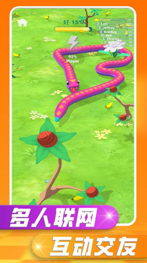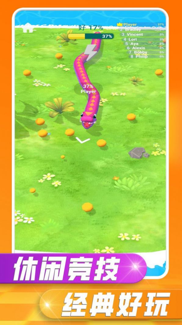 贪吃蛇之战是款好玩的休闲益智手游,经典的贪吃蛇玩法搭配3D游戏画面十分的有趣,在多人激烈的竞争中生存下来,寻找机会来吞噬其他人增强自己的实力,趣味的游戏内容只需要滑动屏幕即可完成挑战,这里更有多种模式任你挑选,快来加入我们一起对战吧!