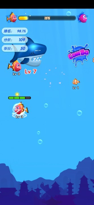 2、在吞噬升级的同时,形象也能不断解锁,成为海洋之王,十分具有挑战性,可玩性很高。