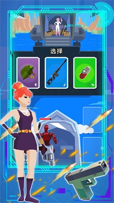 1.开局前选择武器,进入随机地图展开刺激的射击对决,利用场景的障碍物进行射击,躲避敌人的攻击。