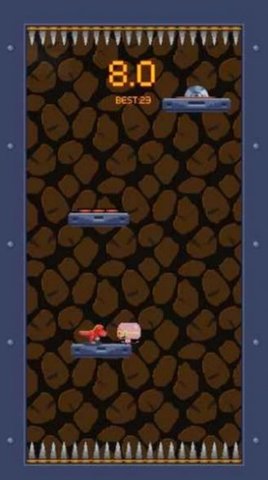 2、屏幕上方会有一个钉板一直往下压,小人如果不及时下到下一层,就会被上面的钉板压死。
