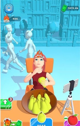 1、游戏开始之后,主播就会一直不断的吃东西,每吃完一个食物就可以增长相应的卡路里。